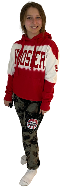 lined hood with wide drawcord twill necktape / locker loop rib cuffs and waistband pouch pocket 80% cotton / 20% poly *white area is approx 8" high, variation in color and pattern may occur due to the tie-dye process