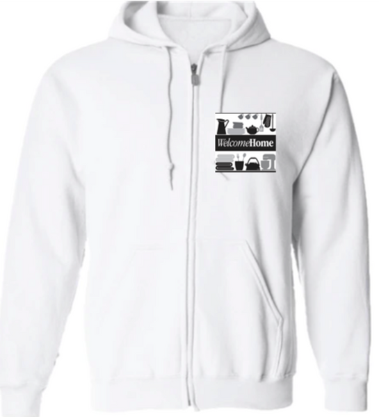 Welcome Home Full Zip Hoodie available in Black and White